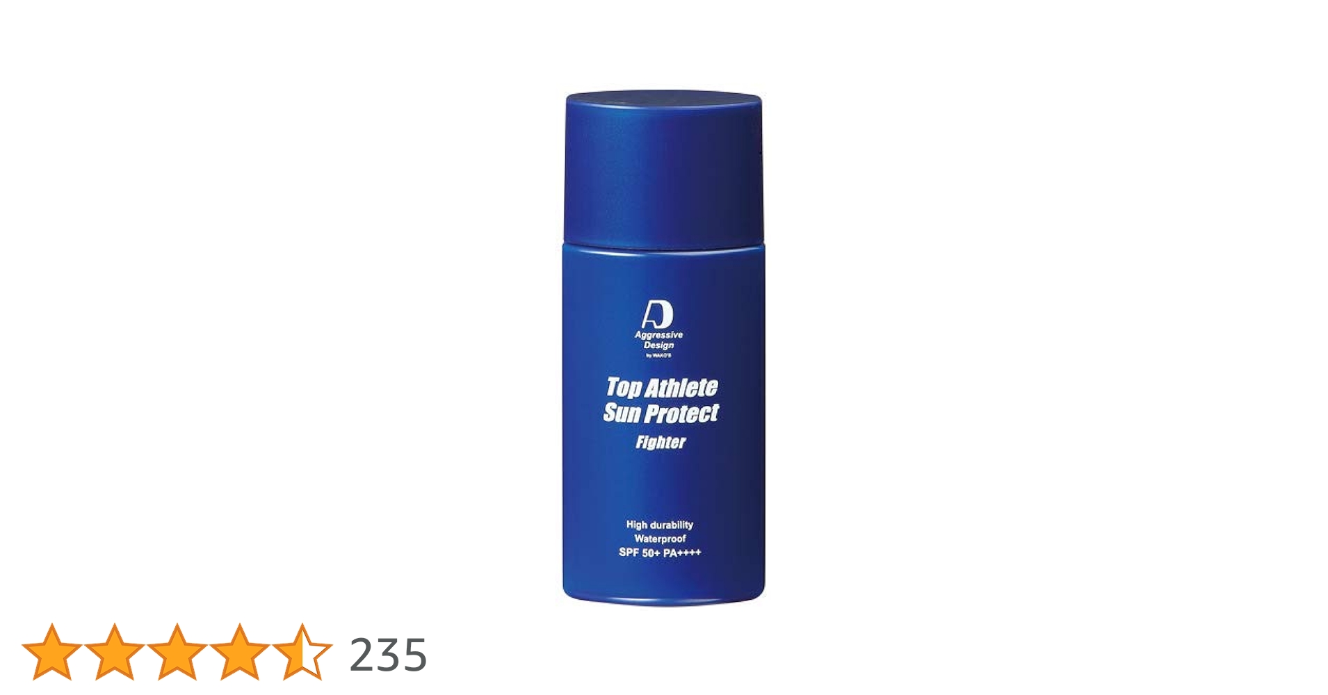 - 去年、Facebookで友人が投稿していた「アグレッシブデザイン トップアスリート サンプロテクト ファイター」を使ってみたら、汗で全然流れないので1日中効果が持続する感じがするのでおすすめです。