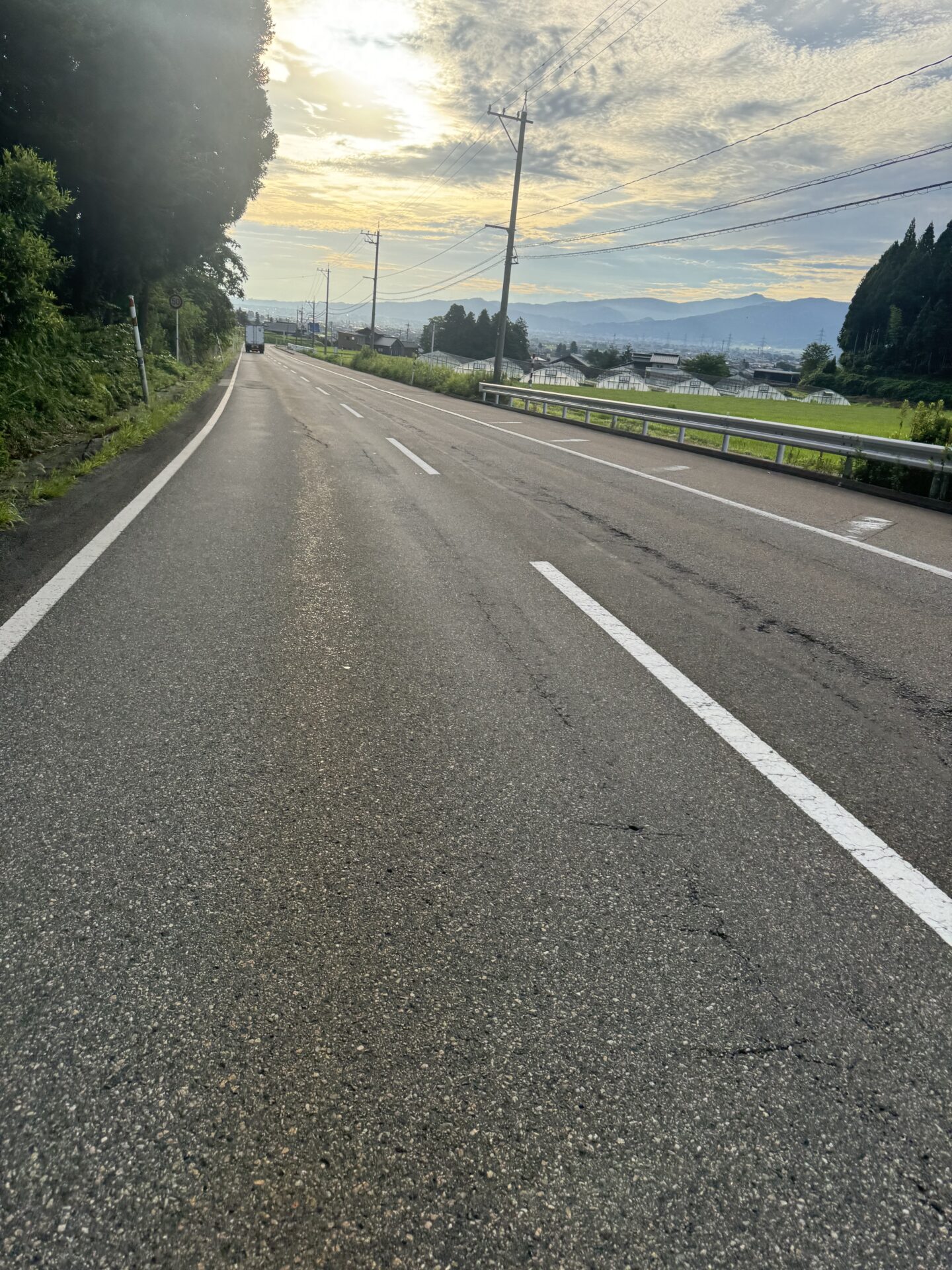 看板を見るとちょっと嫌になりますが、本日のゴールまで156km。。。。直近の道はとても快適で気持ち良いです。見ての通り、道がちょっと荒いので足と腕に振動が響いて体力が削られます。