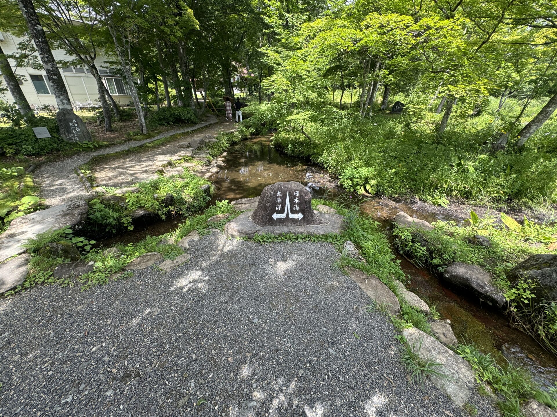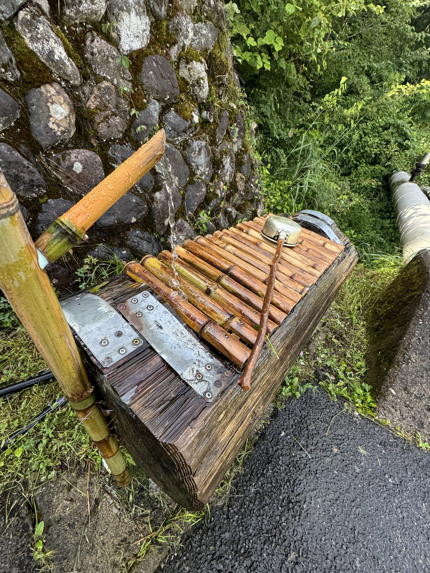 白川郷の出口付近に無料湧き水!山は水が豊富でよいです。熱いので頭から水をかけて冷却しました。
