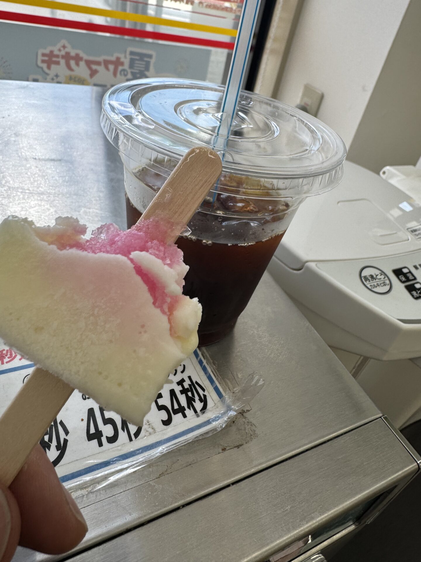 暑いのでまた補給。このかき氷美味しいです。しかも乗りながら食べられるので良いです。