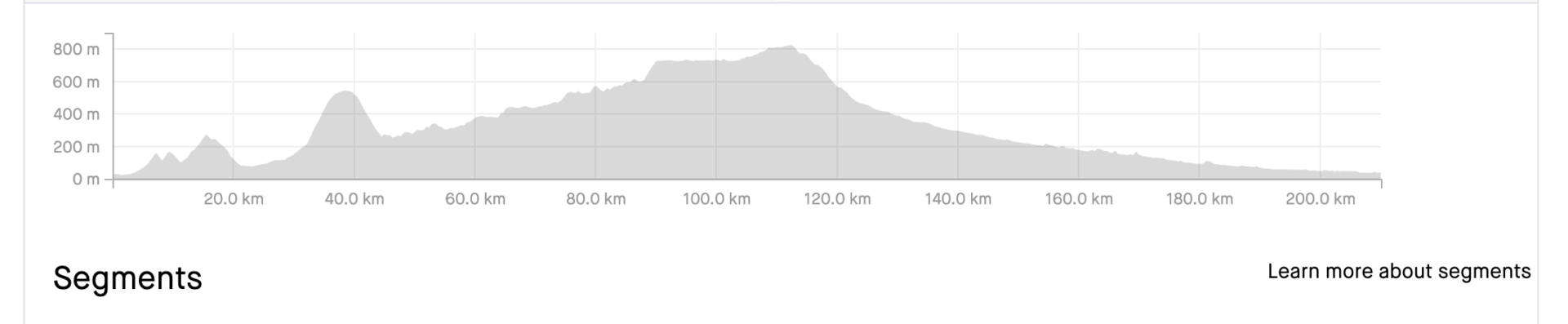 暑すぎて熱中症になりかけです。100W以上出すと熱中症のレベルが上る感じなのでちんたら行きます。向かい風なので進みません。