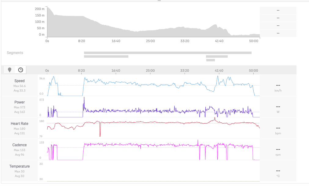 したのグラフが凹んでいるところが修理をしていた時間です。その後は足を休めること無くしばらく漕いでいたっぽいですな。基本的には単独走ですが、別カテゴリの遅目のグループの人も同じコースを走っているのでたまにオーバーテイクできるのでさほどダレること無くバイクパートを終えられました。