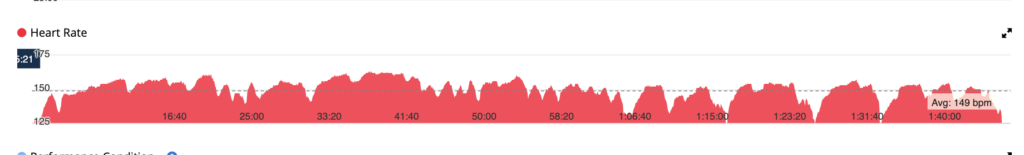 過去9回参加していますが、3番目に速いタイムだったのでペースはやや速め。エネルギー消費は最小限にして、ウォームアップだと思って頑張らないで行きました。