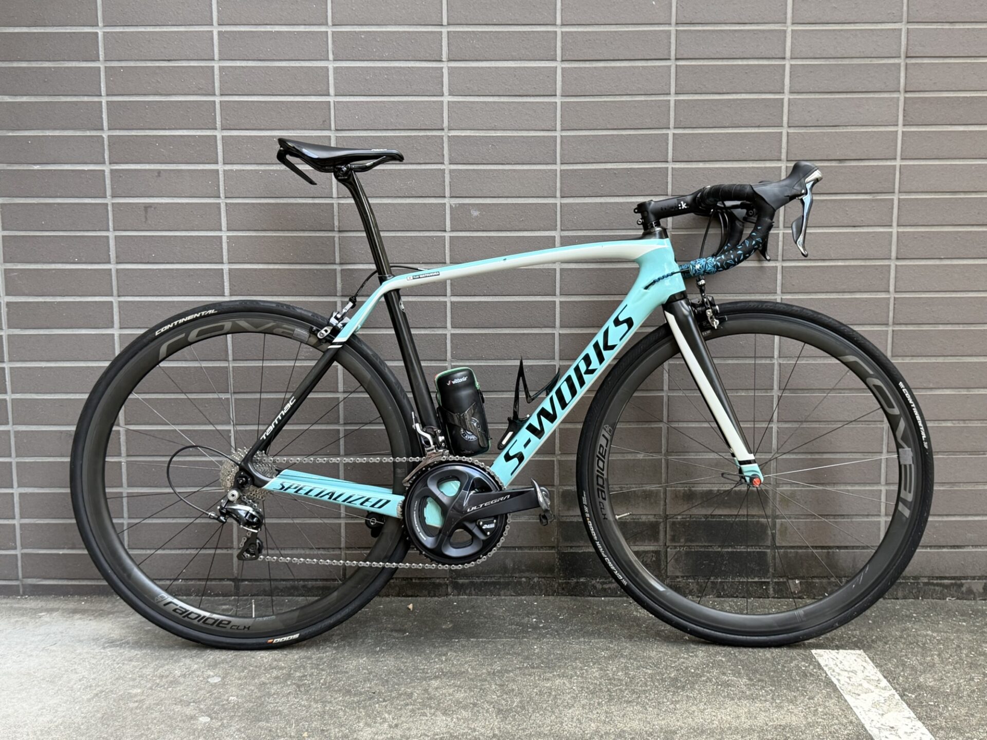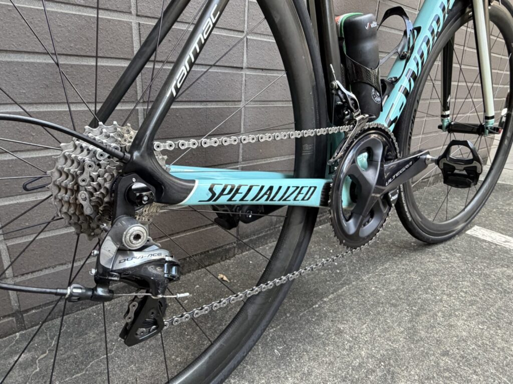 いつものSpecialized S-works Tarmc + Roval rapide CLX 40です。フロントチェーンリングの歯数を変更して、50/34T => 52/36Tにしました。ヒルクライムには良かったのですが、下りでは回しきってしまうので大きめに変更しました。