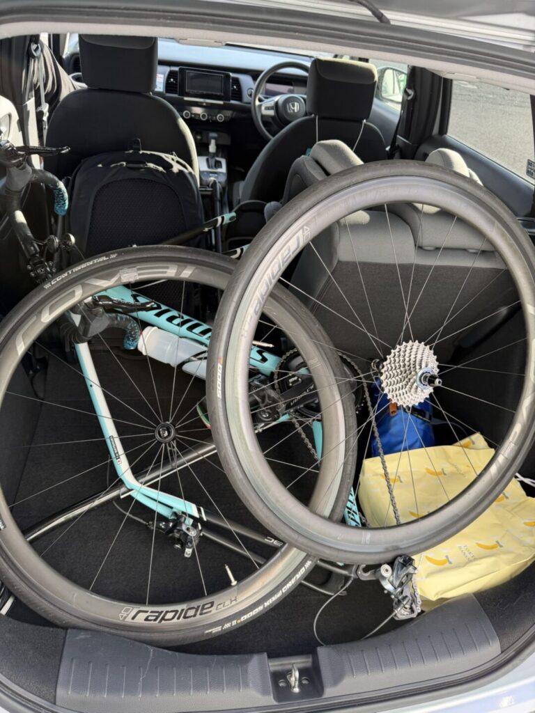 交通手段は2週間前まで迷って新幹線にしました。他の選択肢は、飛行機と車がありました。飛行機は乗る前と後の移動で自転車を持ち歩く距離が長くなるしソフトケースしか無いので破損が怖いため、車は東京から石川県へ行くのってかなり道のりがあるのでレース前後の疲労を極力溜めたくなかったためです。主観的な疲労度合いとしては東京大阪間より辛いです。。。