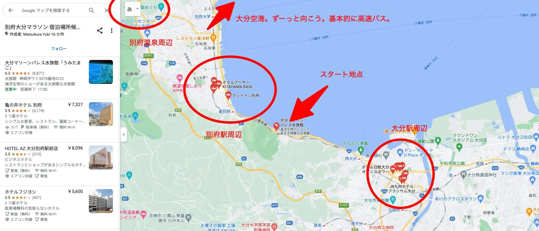 別府大分毎日マラソン大会(別大マラソン)に出るときの宿泊地一覧