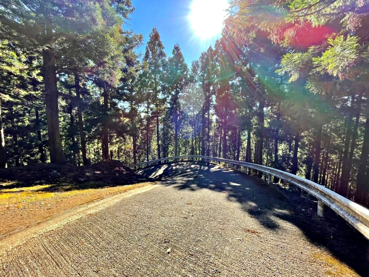下りは本当に注意が必要です。勾配がきついので、スピードが出すぎてしまう。しかも、カーブが多くて見通しが悪い箇所もあります。特に落ち葉が道路に積もっている部分は滑りやすいので、かなり慎重に下りました。