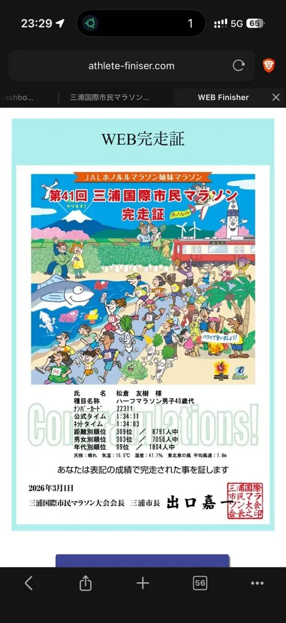 ノー練習の割には予想以上に走れたと思います。最後の方は歩きましたけど。。。。ラストスパートが早すぎて力尽きました。