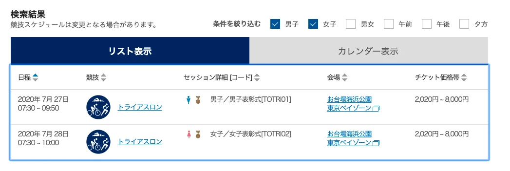 東京オリンピック2020 トライアスロンの開催日時とチケット情報