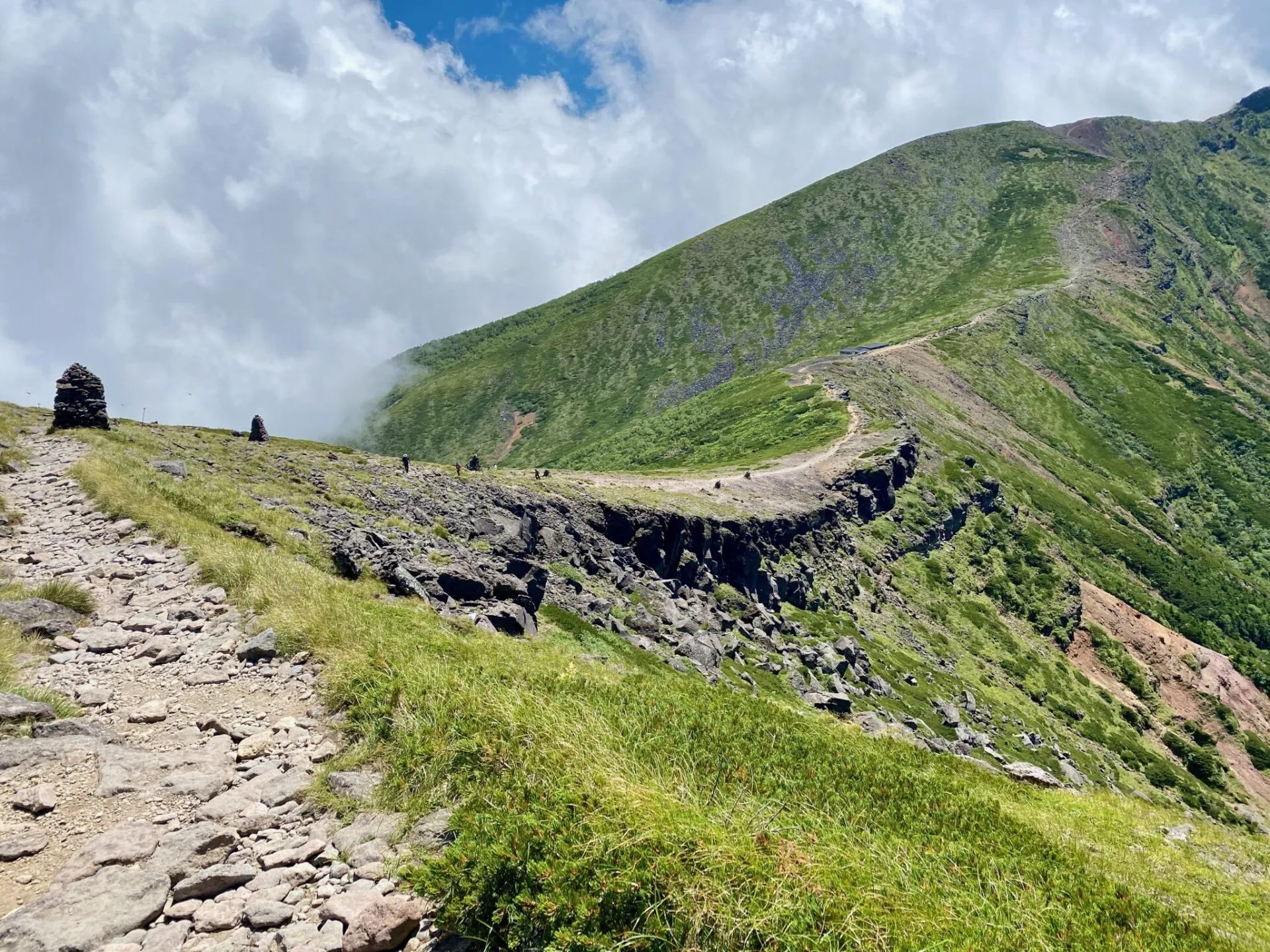 左側はきれいな稜線。右側は岩場多くて辛い感じ。